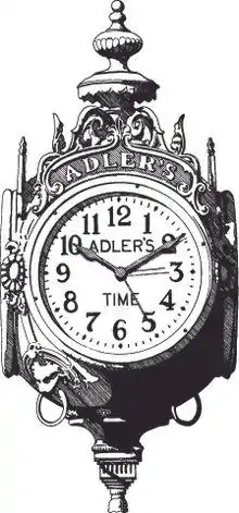 Adler's began as Coleman Adler Jewelry in 1898 in a two-story shop on Royal Street in the French Quarter.[1] In its early years, Adler's designed call-out favors and other jewelry for Mardi Gras krewes.[2] In 1902, the store moved to 810 Canal Street.[3] Canal Street, New Orleans was the shopping district of the entire region during the first half of the 20th century,[4] and Coleman E. Adler was active in the Canal Street Commission for over thirty years.[5] In 1904, Adler's was chosen to create the Times-Picayune Loving Cup awarded to educator Sophie B. Wright.[6] Adler's designed and crafted the silver service the State of Louisiana presented to the navy's U.S.S. Louisiana upon its first arrival at the port of New Orleans in December, 1906.[7] The firm moved to its current location at 722-724 Canal Street in 1909.[8] In 1912, the State of Louisiana chose Adler's to design and manufacture the official Louisiana Centennial coin.[9] The New York Metropolitan Museum of Art houses one of Adler's Centennial Coins in their permanent collection.[10] Adler's also designed the perpetual silver football trophy awarded to the winner of the annual Thanksgiving Day football game played between Tulane University and Centenary College during the 1920s.[11]
