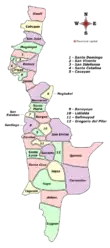 The province of Ilocos Sur is politically subdivided into 32 towns and 2 component cities, all of which are organized into two legislative districts.[1] There are a total of 768 barangays in the province.[2]
