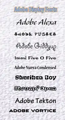 The Adobe Originals program is a series of digital typefaces created by Adobe Systems from 1989 for professional use, intended to be of extremely high design quality while offering a large feature set across many languages. Many are strongly influenced by research into classic designs from the past and calligraphy. Adobe Originals fonts are sold separately or with Adobe products such as InDesign.