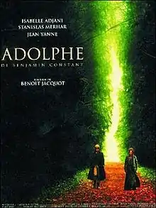 Adolphe is a 2002 French drama film based on the novel Adolphe by Benjamin Constant. The film was directed by Benoît Jacquot and starred Isabelle Adjani as Ellénore and Stanislas Merhar as Adolphe.