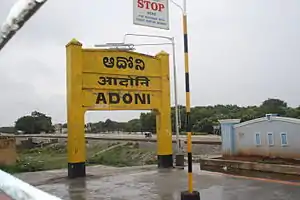 Adoni railway station (station code:AD[1]) is located in Kurnool district in the Indian state of Andhra Pradesh and serves the city of Adoni. It is one of the major railway station of the South Coast railway.
