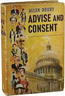 Advise and Consent is a 1959 political fiction novel by Allen Drury that explores the United States Senate confirmation of controversial Secretary of State nominee Robert Leffingwell, whose promotion is endangered due to growing evidence—explored in the novel—that the nominee had been a member of the Communist Party. The chief characters' responses to the evidence, and their efforts to spread or suppress it, form the basis of the novel.