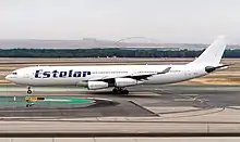 In December 2017, Estelar Latinoamerica announced its first intercontinental route from Caracas to Madrid, Spain. Therefore, it expanded its narrow-body fleet with an Airbus A340-300 on lease from Hi Fly Malta.[4] The route to Madrid was operated with three weekly frequencies, replacing the old route operated by the flag carrier, Conviasa. It also flew the A340 to Buenos Aires, with three frequencies a week.