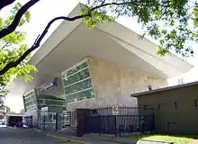 The airport was originally proposed by Mayor Carlos Noël in 1925.[4] A number of feasibility studies and zoning disputes followed. In 1938, plans were submitted for an island airport connected via causeway to Avenida General Paz (then under construction).[5] A former wetland reclaimed in 1916 from the Río de la Plata and closer to downtown was selected instead, and the facility, designed by Aeronautics Secretariat engineer Víctor Acuña in 1945, was inaugurated in 1947 as Aeroparque 17 de Octubre (17 October Airfield).[6]