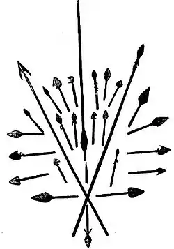 Traditional weapons – spear, bow and war-club The traditional arms and equipment of the tropical kingdoms of West, Central and South-Central Africa consisted of the standard cutting, thrusting and smashing weapons. Spears were less strong than those evolved later in southern Africa under the Zulu, and doubled as throwing and thrusting implements. The bow and arrow found wide use, with relatively weak bow strength being offset by the use of poisoned arrows in many areas. Use of bowmen to defend fortifications was significant, and peoples like the Yoruba sometimes used crossbows for this purpose.[3] Bow strength is reported by many observers as averaging only approximately 40 pounds at full draw, although simple one-piece bows with some of the largest draw-weights in the world are reported from Kenya – 130 lbs compared to 80 lbs for a typical medieval European longbow.[69] The use of poisoned arrows from the West African plant, Strophantus hispidus and other sources however, helped rectify the shortcoming in the weaker African bows, and bowmen were skilled at delivering a large volume of shafts.[3] Among tribes such as the Marka poisoned arrows were about 1 ft long, tipped with iron and poison, and unfeathered. Archers generally carried quivers filled with 40–50 arrows each. Volume could be heavy, with some men firing two arrows at a time. Volume made up for the lack of accuracy with the unfeathered arrows. Resupply arrangements were not well articulated and an archer exhausting his quiver generally withdrew from the field.[64] Although cavalry was known, it was minor among African forces of the Guinea- Gambia regions who used both the maritime and the infantry tradition, conducting raids on land and water. Archery was important and fighting men of some Sierra Leone tribes carried so many poisoned arrows that they needed two quivers. These archers repulsed attempts by privateer John Hawkins in 1568, who tried to launch raids on the African coasts, as well as Portuguese sea intruders before Hawkins. A heavy throwing club was also used in some areas, with sufficient power to break bones on contact. Some of these clubs had sharp animal and fish teeth embedded. Such was their speed and accuracy that African fighters in the 1650s wiped out an attacking Portuguese force with them.[70]