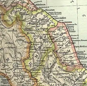 After the Augustan administrative reorganization of the Italian peninsula, the Ager Gallicus was united with Umbria and became part of the Regio VI Umbria et ager Gallicus.