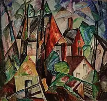 Weinrich was somewhat in advance of Knaths in adopting a modernist style. She had seen avant-garde art while in Paris and met American artists who had begun to appreciate it. On her return to the United States she continued to discuss new theories and techniques with artists in New York and Provincetown, some of whom she had met in Paris. This loosely-knit group influenced one another as their individual styles evolved. In addition to Blance Lazzell, already mentioned, the group included Maude Squires, William Zorach, Oliver Chaffee, and Ambrose Webster. Some of them, including Lazzell and Flora Schofield had studied with influential modernists in Paris and most had read and discussed the influential Cubist and Futurist writings of Albert Gleizes and Gino Severini.[16][17]