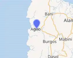 Agno, officially the Municipality of Agno (Pangasinan: Baley na Agno; Ilocano: Ili ti Agno; Tagalog: Bayan ng Agno), is a 3rd class municipality in the province of Pangasinan, Philippines. According to the 2020 census, it has a population of 29,947 people. [4]