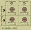 This means a descendant can only develop a recessive coat pattern in the phenotype if both parents are genetic carriers of the corresponding allele or if one parent inherits an epistatically underlying allele to the offspring.[3] The alleles Ay, at and a are not present in wild wolves that have no domestic dog among their ancestors.[4]