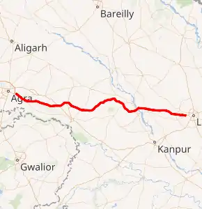 The Agra–Lucknow Expressway is a 302 km long, 6-lane wide (extendable to 8-lanes) access-controlled expressway constructed by the Uttar Pradesh Expressways Industrial Development Authority (UPEIDA)[2] to reduce traffic in already congested roads and to reduce pollution and carbon footprint.[3] The expressway reduced the distance between the cities of Agra and Lucknow in the Indian state of Uttar Pradesh and is presently one of the India's longest operational expressway.