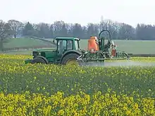Spraying a crop with a pesticide