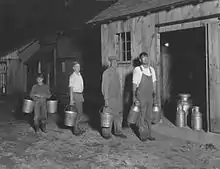 That would change in the first half of the century, in part due to Connecticut's own metropolitan centers swelling in size, as well as improved machinery that enabled farmers to plant and harvest more crops, including the Hawkes Plow manufactured in Hartford beginning in the 1830s.[59] The tobacco industry also saw its first significant growth in the first half of the 19th century, as farmers in the Connecticut River valley and later the Housatonic River valley found success with their leaves as cigar wrappers. By 1810, cigar and plug factories were established in East Windsor and Suffield.[60] Farmers also sought to introduce better stocks of cattle, including Devonshires beginning in 1819; Ayrshires in 1822; Guernseys in 1830; Shorthorns in 1835; Jerseys in 1846; and Holsteins some time after 1860.[61] From 85,000 milk cows in the state as of 1850, the herd would increase to 128,000 by the end of the century.[62]