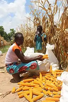 Agriculture in Ghana consists of a variety of agricultural products and is an established economic sector, providing employment on a formal and informal basis.[1][2] Ghana produces a variety of crops in various climatic zones which range from dry savanna to wet forest which run in east–west bands across Ghana. Agricultural crops, including yams, grains, cocoa, oil palms, kola nuts, and timber, form the base of agriculture in Ghana's economy. In 2013 agriculture employed 53.6% of the total labor force in Ghana.[3][4]