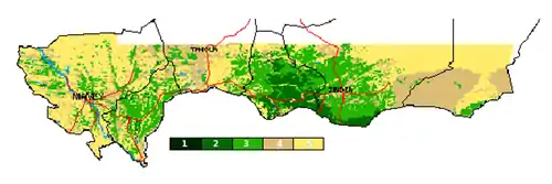 Rainfall varies and when insufficient, Niger has difficulty feeding its population and must rely on grain purchases and food aid to meet food requirements.[2] Rains, as in much of the Sahel, have been marked by annual variability. This has been especially true in the 20th century, with the most severe drought on record beginning in the late 1960s and lasting, with one break, well into the 1980s. The long-term effect of this, especially to pastoralist populations remains in the 21st century, with those communities which rely upon cattle, sheep, and camels husbandry losing entire herds more than once during this period. Recent rains remain variable. For instance, the rains in 2000 were not good, those in 2001 were plentiful and well distributed.