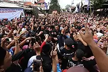 In 2016, he was appointed by the Democratic Party, the National Awakening Party (PKB), the United Development Party (PPP), and the National Mandate Party (PAN), to become a candidate for the 2017 Jakarta Governor election.[5] Despite losing the election to Anies Baswedan, he remained active in politics. He commanded the Joint Task Command (Kogasma) to win Indonesia's 2019 General Election.[6] On early 2019 he targeted to achieve 15 percent of national vote,[7] but later he revised the target to achieve 10 percent of national vote.[8] He was then given a new position as Deputy chairman of the Democratic Party.[9] He was also elected to be the leader of the Democratic Party by acclamation on 15 March 2020.[10]