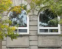 The former Ahavas Sholem Synagogue stands on the west side of White Street, a short residential street in New Haven's The Hill neighborhood, southwest of downtown. It is a two-story masonry structure, built out of gold-colored brick with limestone trim. It has a particularly handsome Classical Revival facade, with limestone on the first level, which is continued on the second level around that floor's arched windows. A panel above the main entrance identifies the congregation and the year of the building's construction in the Hebrew calendar. Some of its original windows are incised with the Star of David, which is repeated in a rounded pediment at the roof level.[2]