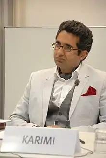 For his diversity and his "rise from refugee to professor",[2] Karimi is described as "Germany's most dynamic philosophers of religion" (Qantara),[3] "one of the most prominent Islamic scholars in Europe",[4] and one of the "distinctive heads of Islam in Germany".[5] For his work dedication as the "most extraordinary" book of 2015 in the field of Islamic studies in the German-speaking world, Karimi received the Rumi Award for Islamic Studies for his work "Hingabe. Grundfragen der systematisch-islamischen Theologie".[6]