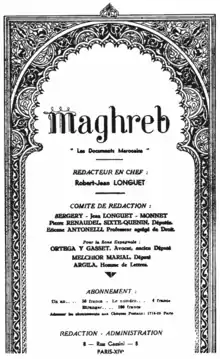 The protest against the Dahir was only one of Balafrej and his companions' commitments. At the beginning of 1932, Balafrej, Ouazzani, and Ben Abdeljalil approached Robert-Jean Longuet, Parisian lawyer, anti-colonialist, and socialist, to secure the defense of the Moroccan nationalists harassed by the authorities. Balafraj and Ouazzani founded the journal Maghreb in 1932.[3]