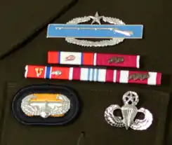 The wearing of the Air Assault Badge on Army uniforms is governed by Department of the Army Pamphlet (DA PAM) 670-1, "Guide to the Wear and Appearance of Army Uniforms and Insignia." Under this DA PAM, the Air Assault Badge is defined as a Group 4 precedence special skill badge which governs its wear in relation to other combat and special skill badges and tabs.[53] The basic eligibility criteria for the badge consist of satisfactory completion of an air assault training course in accordance with the U.S. Army Training and Doctrine Command's standardized Air Assault Core Program of Instruction or completion of a standard Air Assault Course while assigned or attached to the 101st Airborne Division since 1 April 1974.[1]