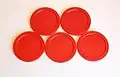 Air Hockey pucks are discs made of Lexan polycarbonate resin. Standard USAA and AHPA-approved pucks are yellow, red, and green. In competitive play, a layer of thin white tape is placed on the face-up side. Air Hockey pucks come in circles and other shapes (triangle, hexagon, octagon, or square).