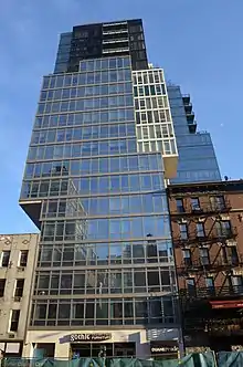 A building is cantilevered over two other buildings in New York City