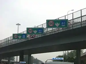 Leftmost lane: minimum 100 km/h, maximum 120 km/h. Other lanes: minimum 60 – 80 km/h, maximum 100 km/h.