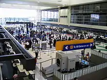 When London Stansted Airport's new terminal opened in 1991, it marked a shift in airport terminal design since Norman Foster placed the baggage handling system in the basement in order to create a vast open interior space.[3] Airport architects have followed this model since unobstructed sightlines aid with passenger orientation. In some cases, architects design the terminal's ceiling and flooring with cues that suggest the required directional flow.[4] For instance, at Toronto Pearson's Terminal 1 Moshe Safdie included skylights for wayfinding purposes.