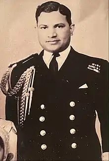 In December 1953, he was appointed the next Commodore-in-Charge Bombay (COMBAY) in the rank of Commodore. He relinquished command of the dockyard, handing over to Captain S. G. Karmarkar in March 1954.[21] He then assumed office of COMBAY from Commodore R M T Taylor, the first Indian Officer to do so.[22] This appointment was later upgraded to Rear Admiral and re-designated Flag officer Bombay in 1958, and to Vice Admiral and re-designated Flag Officer Commanding-in-Chief Western Naval Command in 1968.[23] Later that year, he was selected to attend the Imperial Defence College in the UK. He relinquished command to Commodore Adhar Kumar Chatterji in November.[24] After the year-long course, he returned to India and took over as Deputy Chief of the Naval Staff on 10 March 1956 from Commodore Ram Dass Katari, who took charge as the first Indian Fleet Commander.[25][26]