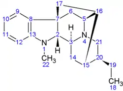 Note that the numbering of the atoms in the systematic names is different from the conventional numbering of ajmalan.[4]