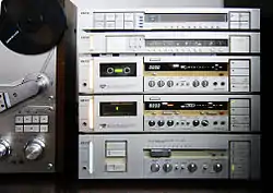 Akai's products included reel-to-reel audiotape recorders (such as the GX series), tuners (top level AT, mid level TR and TT series), audio cassette decks (top level GX and TFL, mid level TC, HX and CS series), amplifiers (AM and TA series), microphones, receivers, turntables, video recorders and loudspeakers.