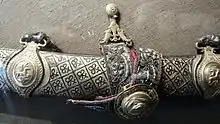 For one full month[24] the Sikh cannons fired at the walls of the fort. The Sikh Army broke a hole through in a section of the wall by putting gunpowder underneath the fort doors. Akali Phula Singh and his Nihangs were the first to charge through the breach[25] and after hand-to-hand fighting the Sikhs gained victory. Qutbuddin tried to run away but was soon caught. After begging for mercy Maharaja Ranjit Singh forgave him and give the Nawab a jagir of land at Mamdot,[26] near the Sutlej River and Lahore. Kasur was made a part of Ranjit Singhs empire. After this battle Akali Phula Singh gained affection from Ranjit Singh and Akali Phula Singh became a reliable military ally.[27] The Nihang jatha was large now and they got a jagir for Langar.[28] At this time Akali Phula Singh and his Akalis used to ask for weapons and horses from the local leaders and if they were not given they would take them by force themselves. This stopped after Ranjit Singh gave them permission to take whatever they required from the Sikh Empire's army barracks.