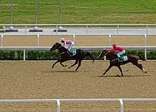 Turkmenistan has a separate agency, Turkmen Atlary, responsible for the breeding, training and maintenance of Akhal-Teke horses.[29] However, the agency's work has been the focus of criticism from the President of the country, who holds the agency responsible for decreasing numbers of horses and inadequate facilities for their breeding, training and management.[30] At present Akhal-Teke horses in Turkmenistan are not registered with any other studbook. The main reason for this are allegations of a heavy infusion of Thoroughbred blood into the breed to create faster horses for racing in Turkmenistan.[31] There are estimates that as many as 30% of the horses in the Ashgabat hippodrome were not purebred.[32]