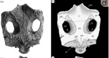 | An image (A) and a drawing (B) of the underside of the skull of Aktiogavialis puertoricensis | |