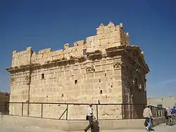 It was fortified in the Arab period, the arch on the rear wall being filled in with stones and defensive devices. The temple has been restored as the result of much research and reconstruction work.[1]