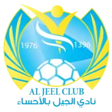 Al-Jeel Club (Arabic: نادي الجيل) is a Saudi Arabian football club based in Hofuf, Al-Hasa.[1] Founded in 1976, the club competes in the MS League , the second tier of Saudi football.[2] Al-Diriyah play their home games at the Prince Abdullah bin Jalawi Stadium in Al-Hasa.[3] Al-Jeel have finished as runners-up in the Saudi Second Division twice in 1986[4] and 2010.