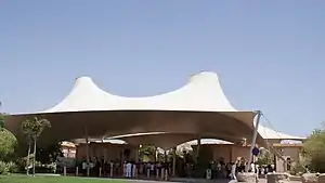 Al Ain Zoo (Arabic: حَدِيْقَة ٱلْحَيْوَانَات بِٱلْعَيْن, romanized: Ḥadīqat Ḥaywānāt Bil-ʿAyn), also "Al Ain Wildlife Park & Resort"[3][4] or simply "Al Ain Wildlife Park" (Arabic: مُتَنَزَّه ٱلْعَيْن لِلْحَيَاة ٱلْبَرِيَّة, romanized: Mutanazzah Al-ʿAyn Lil-Ḥayāt Al-Bariyyah),[5][6][7] is a 400-hectare (990-acre) zoo located in the foothills of Jebel Hafeet in Al Ain, Abu Dhabi, the United Arab Emirates. It is primarily composed of ungulates and herbivores such as Arabian antelopes and oryx, eland, gazelle, lechwe and can be found in the tree shaded paddocks which offer breeding conditions that were deemed 'excellent'.[8] Like the Breeding Centre for Endangered Wildlife in the Emirate of Sharjah, which is now closed to the public,[9] it is a member of the EAZA.[1]