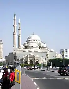 Al Noor Mosque (Arabic: جَامِع ٱلنُّوْر, romanized: Jāmiʿ An-Nūr) is a mosque in Sharjah, the United Arab Emirates, located on the Khaled lagoon at the Buhaira Corniche.[2] It is of Turkish Ottoman design and was influenced by the Sultan Ahmed Mosque in Turkey.[1][3] It is one of the mosques open to the public in Sharjah, which has over 600 total.[1][4][5]