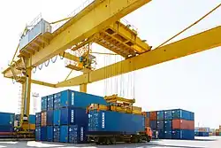 An equipped container platform for cargo shipment has been operating in Alabuga since January 2008.[25] Yelabuga customs post of the Tatarstan customs office, established a year earlier, started working in April 2008. The area of its activity is limited by the territory of the SEZ "Alabuga". The on-site post with 46 employees has been located in the administrative and business centre and became part of the "one-stop-shop" system for resident companies. The free customs zone was opened in Alabuga along with the customs post. According to the results of 2014, Yelabuga customs post was declared the best customs post in Russia.[26][27][28]