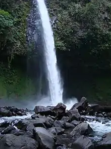 A seminal event in Alajuela's history was the 1968 eruption of Volcán Arenal.[13] Residents previously referred to it as Mount Arenal. In the years before the eruption, residents reported rises in the temperature of ground water and small tremors. Beginning on 28 July 1969, residents of surrounding towns reported constant tremors.[14] The eruptions began on 29 July, spewing ash into the neighboring provinces and launching boulders into the sky.[13] The initial explosions were so strong that three craters were instantaneously created.[14] The cities of Tabacón, Pueblo Nuevo and San Luís were buried, killing 87 people.[13] Crops were destroyed and livestock were killed.[13]