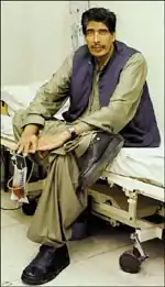 Haji Mohammad Alam Channa (1953 or 1956 – 2 July 1998) was a Pakistani farmer who was one of the tallest living people with the height of 7.8 feet (2.4 m).[1][2] According to the Guinness Book of World Records, the tallest living man in the world (between 1982 and 1998), was Pakistan's Mohammad Alam Channa. Before his death in 1998, Channa was reported to be 7.7 feet (2.3 m) tall.[3]