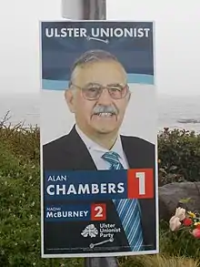Alan Chambers is a politician from Northern Ireland. Since the 2016 election he has served as an Ulster Unionist Party (UUP) MLA for North Down.[1]