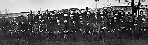 The Ottoman Empire continued to crumble after the Congress of Berlin and Sultan Abdül Hamid II resorted to repression to maintain order.[89] The authorities strove without success to control the political situation in the empire's Albanian-populated lands, arresting suspected nationalist activists.[82] When the sultan refused Albanian demands for unification of the four Albanian-populated vilayets, Albanian leaders reorganized the League of Prizren and incited uprisings that brought the Albanian-populated lands, especially Kosovo, to near anarchy. The imperial authorities disbanded a successor organisation Besa-Besë (League of Peja) founded in 1897, executed its president Haxhi Zeka in 1902, and banned Albanian-language books and correspondence.[90][91] In Macedonia, where Bulgarian-, Greek-, and Serbian-backed guerrillas were fighting Ottoman authorities and one another for control, Muslim Albanians suffered attacks, and Albanian guerrilla groups retaliated.[92][93] Albanian leaders meeting in Bitola during 1905 established the Secret Committee for the Liberation of Albania.[94][95] In 1905, priest Kristo Negovani who had attained Albanian national sentiments abroad returned to his native village of Negovan and introduced the Albanian language for the first time in Orthodox liturgy.[96][97][98] For his efforts Negovani was killed by a Greek guerilla band on orders from Bishop Karavangelis of Kastoria that aroused a nationalist response with the Albanian guerilla band of Bajo Topulli killing the Metropolitan of Korçë, Photios.[99][97][96][98][100]
