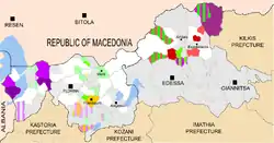 A small community is located in the Ioannina regional unit, where they form a majority in two villages of the Konitsa district.[14] This community includes the village of Plikati.[15] Although they are sometimes called Arvanites, their dialects are part of Tosk Albanian rather than Arvanitika. This population speaks the Lab branch of the Albanian language. The city of Ioannina in the past had a substantial minority of Albanian-speakers, where a dialect intermediate between Cham and Lab was spoken.[16] During Ottoman era the Albanian minority in the kaza of Ioannina did not consist of native families but was limited to a number of Ottoman public servants.[17]