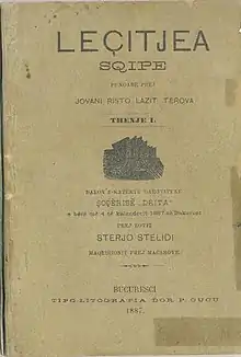 The Rilindja Kombëtare movement of Albanian nationalism inside the Ottoman Empire was present and prolific in Wallachia, the center of cultural initiatives taken by Dora d'Istria, Naim Frashëri, Jani Vreto, and Naum Veqilharxhi (the latter published the first ever Albanian primer in Bucharest, in 1844).[2] Aleksandër Stavre Drenova, a resident of Bucharest, authored the lyrics of Albania's national anthem, Hymni i Flamurit, which is sung to the tune of "Pe-al nostru steag e scris Unire", composed by the Romanian Ciprian Porumbescu.[2] At the time, Albanians were present, alongside other Balkan communities, in Bucharest's commercial life, where many worked as street vendors (specializing in the sale of soft drinks or confectionery items).[18]