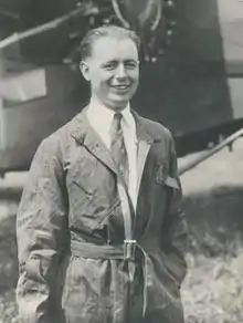 Hegenberger was born at Boston, Massachusetts, in 1895. He entered the Massachusetts Institute of Technology in 1913 to undertake the course in civil engineering. When the United States entered World War I, Hegenberger enlisted in the Aviation Section, Signal Enlisted Reserve Corps as a private first class (flying cadet) on September 14, 1917. He completed ground school training at the school of military aeronautics at M.I.T. in December 1917, and proceeded to Ellington Field, Texas, where he earned a rating of Reserve Military Aviator. He was appointed a second lieutenant in the Signal Officer Reserve Corps on April 6, 1918. He was sent to the pilot pool at the Aviation Concentration Center at Camp John Dick, Dallas, Texas; then assigned successively to the School of Aerial Observers, Post Field, Fort Sill, Oklahoma; the School of Aerial Gunnery, Taliaferro Field, Texas, graduating as a gunnery pilot of July 5, 1918; and in October, 1918 back to M.I.T. for a four-month course in aeronautical engineering.[2]