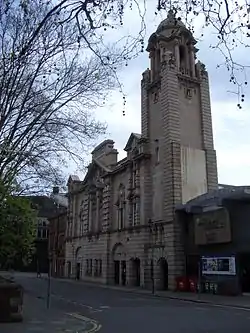 Although the outstanding debt was a millstone, the work of the mission went from strength to strength until 22 April 1906, when fire swept through the building.[3] The Methodists then realised that the Hall was under-insured. This time, a prominent local Methodist, Albert Edward Lambert, who had been responsible for Nottingham Midland Station was asked to produce a plan. His new Albert Hall Methodist Mission was built in the style of an Edwardian Theatre or Music Hall and, in the practice of temperance halls, concerts and other events were staged in the building.