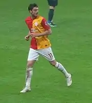 On 3 September 2011, Riera completed a €3 million move to Turkish giants Galatasaray S.K., signing a four-year contract.[24] He scored his first goal in the Süper Lig on 25 January 2012 in a 4–0 home defeat of MKE Ankaragücü, and was an habitual first-choice in his first season as the Istanbul-based team won the national championship; he was also involved, however, in a punching session with teammate Felipe Melo just before the playoffs started.[25]