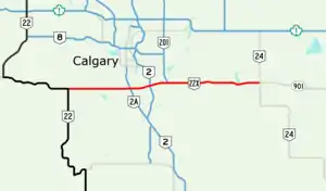![]() Calgary area with Highway 22X highlighted in red | ||||
