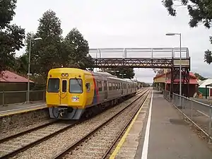 The stone and brick building on the Port Adelaide-bound platform is the original station building dating from 1856.