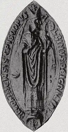 The Pope followed legate Otto's earlier dispensation, and on 19 July 1246 issued the mandate for confirmation and consecration to the Kingdom of Scotland's three senior bishops: David de Bernham, Bishop of St Andrews; William de Bondington, Bishop of Glasgow; and Geoffrey de Liberatione, Bishop of Dunkeld.[7] The consecration took place some time before 13 May 1247, the date Albin was given his first recorded task as a consecrated bishop, when he, Clement, Bishop of Dunblane, and David de Bernham, Bishop of St Andrews, were authorised to perform the episcopal consecration of Peter de Ramsay as Bishop of Aberdeen.[8]